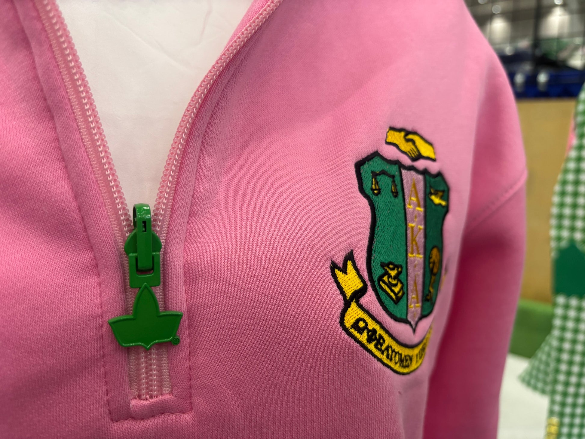 This Alpha Kappa Alpha Sorority, Inc. quarter zipper pullovers are made with high quality soft cotton and finished with a stunning ivy zipper slider. This pullover is made with 80% cotton 20% polyester.