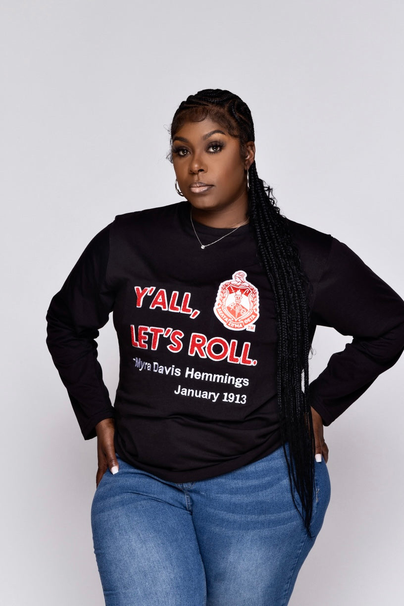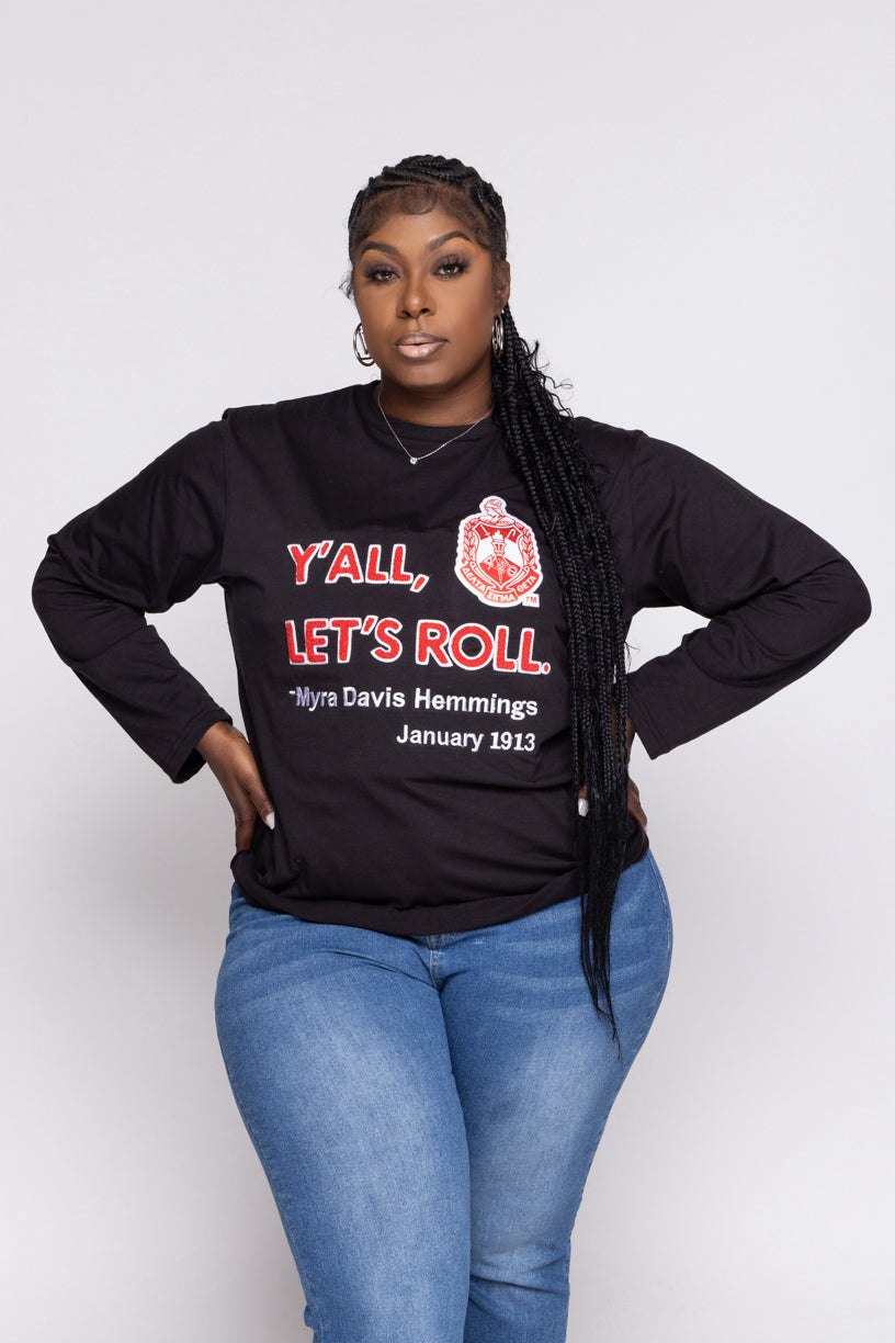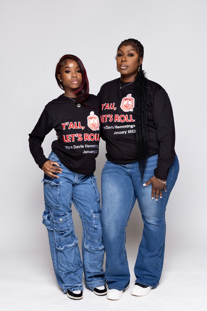 Delta Sigma Theta Sorority, Inc. Y'all Long Sleeve T-shirt (black)